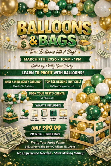 Ready to level up your party game and elevate your profits? Join us for Balloons & Bags, an exclusive in-person class hosted by Shatyra, where creativity meets strategy.