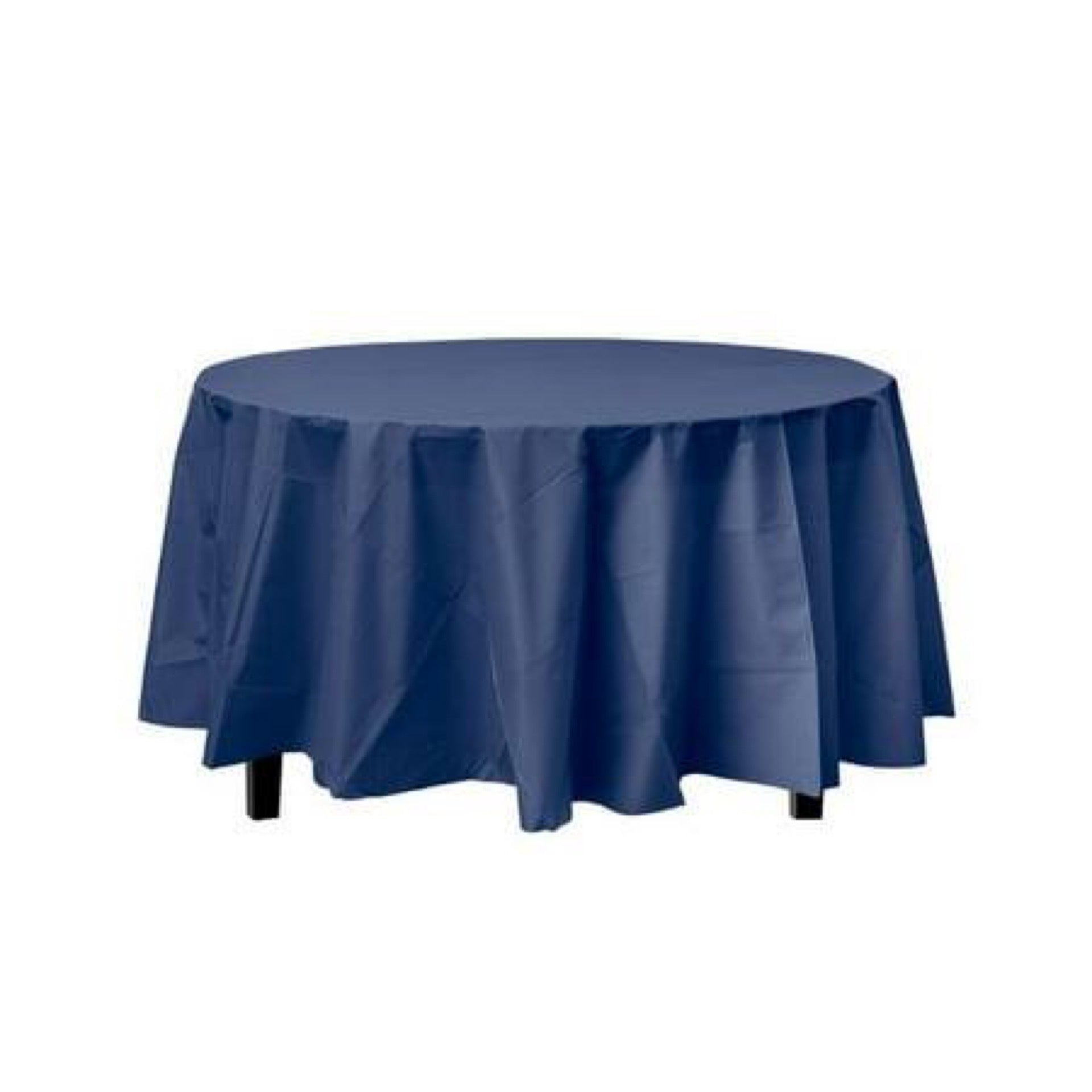 Navy Blue Decorations | Round Navy Blue Table Cloth | Round Plastic Table Cover - Navy Blue - 84in.