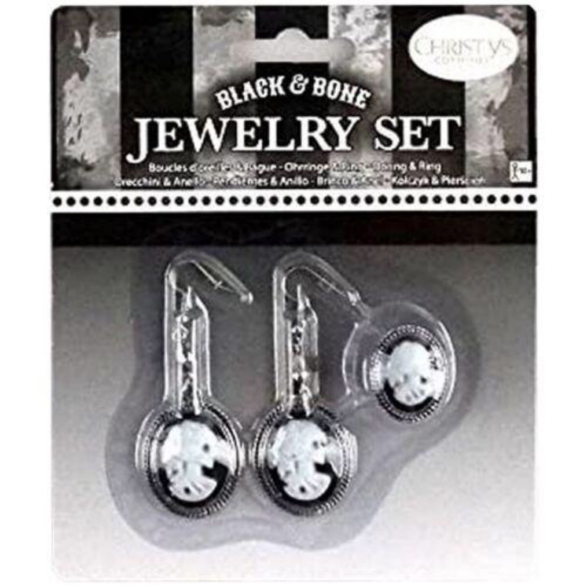Adult S Black & Bone Halloween Fancy Dress Accessory Earrings & Ring Jewelry Set