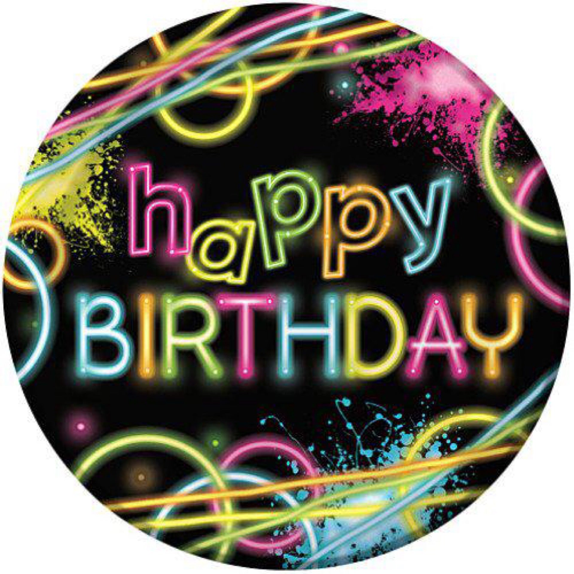 Glow Party Round Paper Plates 8 Count for 8 Guests