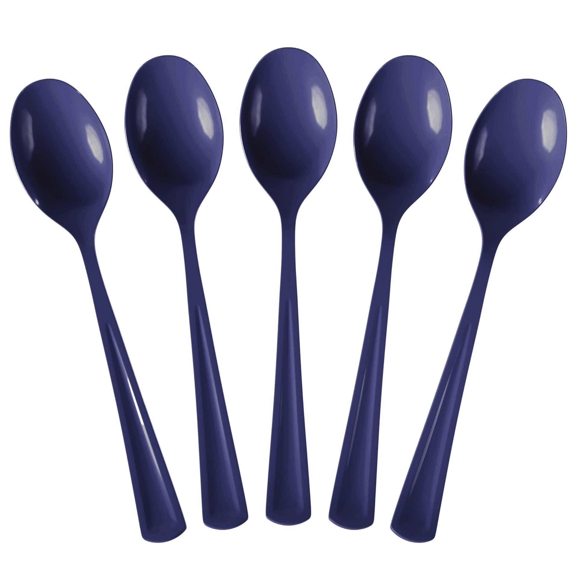 The Navy Plastic Spoons set includes 50 durable, heavy-duty spoons designed with an elegant navy finish. Perfect for parties and events, these disposable utensils combine convenience with style for any occasion.