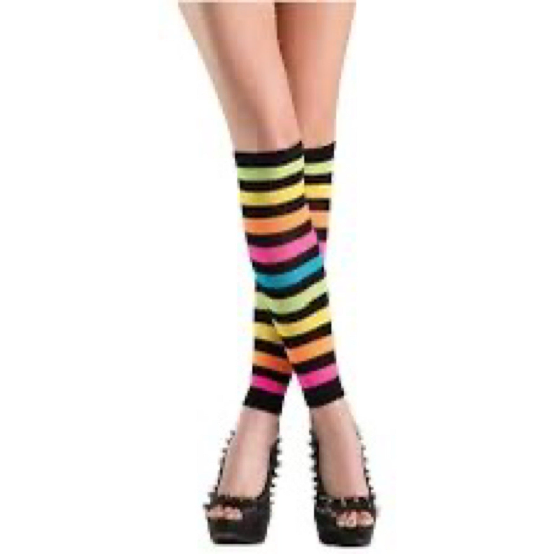 Step up your fashion game with these vibrant rainbow leg warmers. With a comfortable and stretchy fit, and a versatile footless design, these hosiery are perfect for adding a pop of color to any outfit!